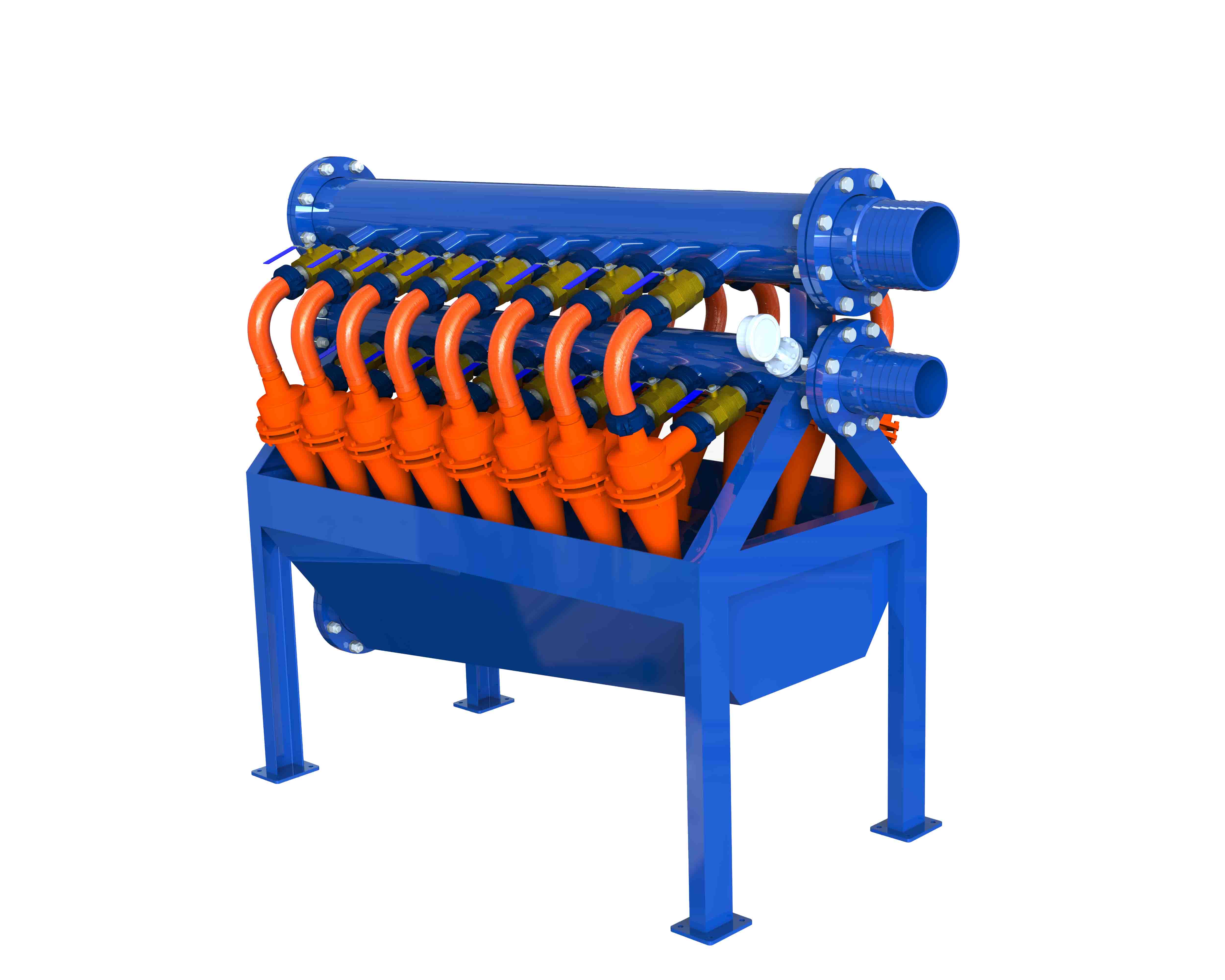 除泥器是處理鉆井液的三級固控設備,主要用于分離鉆井液中粒度為15-45μm的固相顆粒,除泥器是鉆井泥漿固控設備中的一種,在固控系統中,一般放在除砂器和鉆井液離心機之間,用于分離較小的固相顆粒,北鉆固控可根據客戶要求處理量的大小,選擇幾組旋流器組合成除泥器。 北鉆固控除泥器分為無底流篩式除泥器和帶底流篩式除泥器。 BZCN系列除泥器技術參數 型號 BZCN100-6N BZCN100-8N BZCN100-12N BZCN100-16N 處理量 90m³/h 120m³/h 240m³/h 360m³/h 旋流器規格 4寸 旋流器數量 6個 8個 12個 16個 工作壓力 0.25-0.4MPa 分離顆粒 15μm-45μm 匹配振動篩 BZS60 BZS752 防爆標準 ExdIIBt4/IECEX/A-TEX 外形尺寸 1510X1360X1810mm 1510X1360X1810mm 1835X1430X2085mm 1835X1430X2085mm 北鉆除泥器特點和優勢: 1.旋流器材質為100%純聚氨酯材料,根據不同的處理量生產配置不同規格的除泥器; 2.分離能力強,分離范圍廣,可去除15μm到45μm的固體顆粒; 3.旋流器流出口采用噴嘴設計,顆粒迅速排出,減少阻塞概率; 4.使用壽命長,重量輕,易于維護,設計緊湊,占用空間??; 5.噪聲小,處理量大,篩網壽命長; 6.匹配底流篩采用國際知名品牌振動電機,意大利OLI電機或者美國Martin電機; 7.主要電器元件選用西門子,施耐德或者ABB等國際品牌。