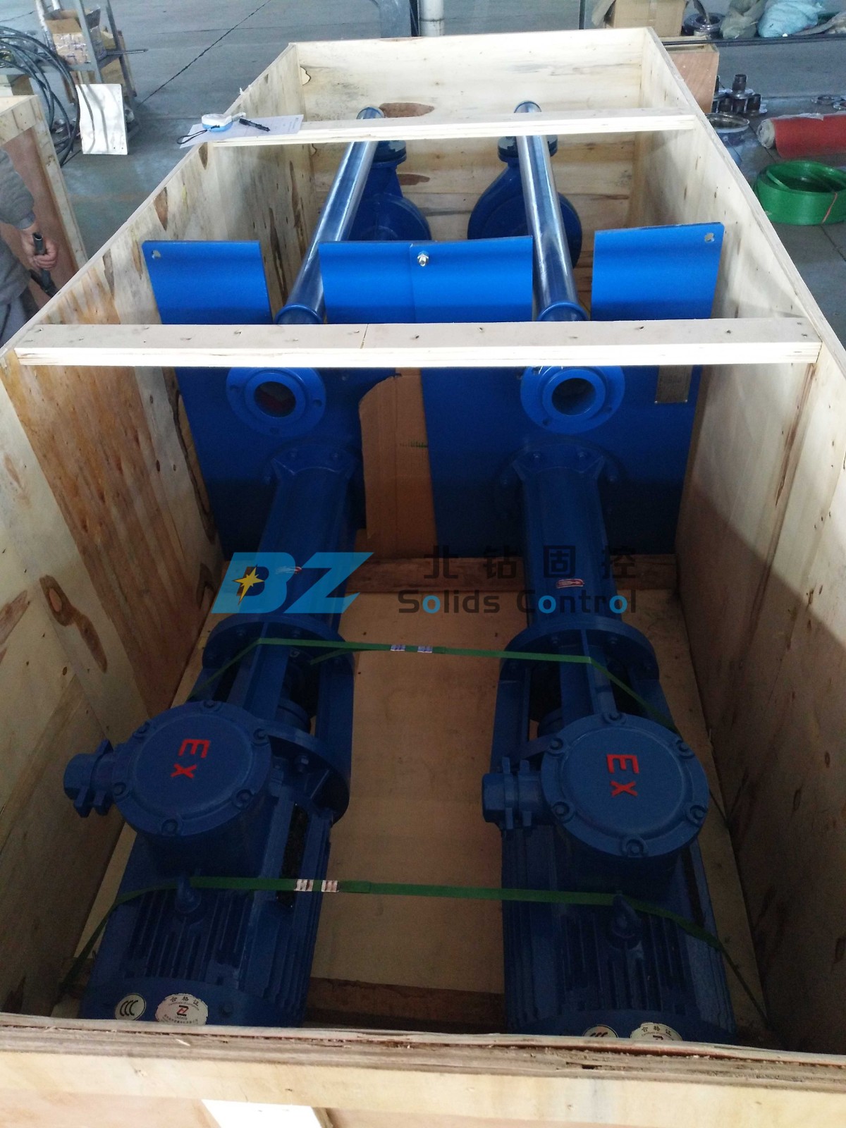 北鉆固控生產制造的液下渣漿泵是一種常用的離心供漿泵,主要用于環保、市政工程、火力發電廠、煤氣焦化廠、煉油廠、煉鋼廠、采礦、造紙業、水泥廠、食品廠、印染等行業抽吸濃液、稠油、油渣、污濁液、泥漿、灰漿、流砂及城市排污溝道的流動污泥,以及含有泥砂渣物的流體和有腐蝕性液體。此次客戶采購的7.5kw和11kw液下渣漿泵是立式單級單吸懸臂式離心泵結構,主要用于油田鉆井固控系統中,為泥漿振動篩和離心機等泥漿分離設備供漿,水平定向穿越或者城市打樁工程中液下渣漿泵將用來給泥漿振動篩,除砂器和除泥器供給泥漿。